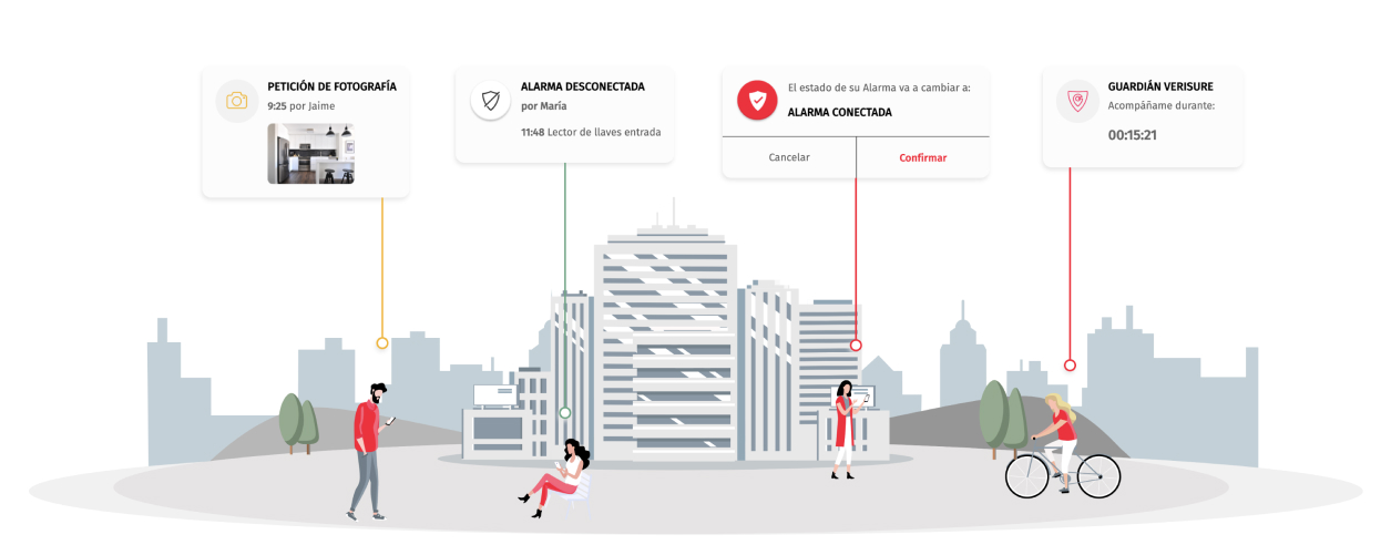 Con My Verisure, puedes controlar desde cualquier lugar tu sistema de alarma y supervisar -con audio, imágenes y notificaciones en tiempo real- todo lo que ocurre en tu hogar o tu negocio. Además, podrás pedir ayuda ante cualquier emergencia, estés donde estés, gracias al servicio Guardián Verisure.