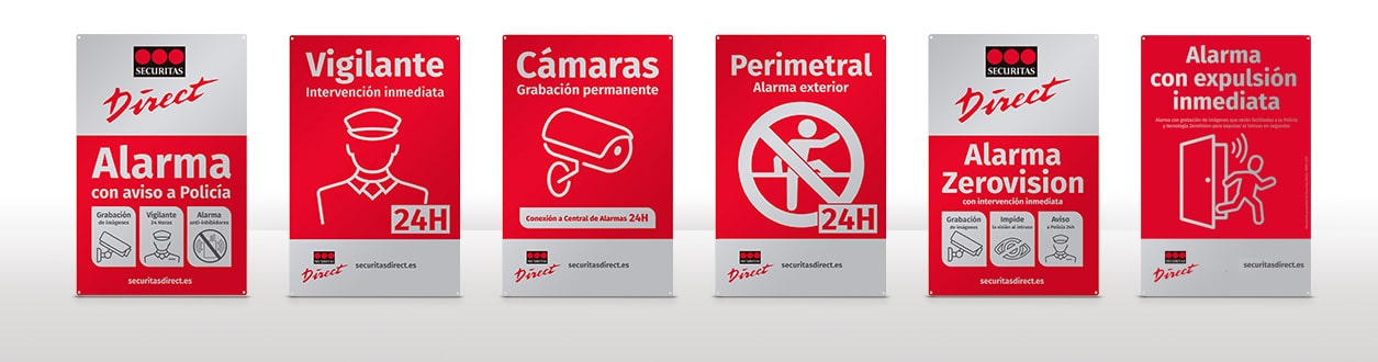 A més, els nostres cartells dissuasius identifiquen clarament les llars o els negocis que estan protegits per Securitas Direct, l'empresa d'alarmes líder a Espanya