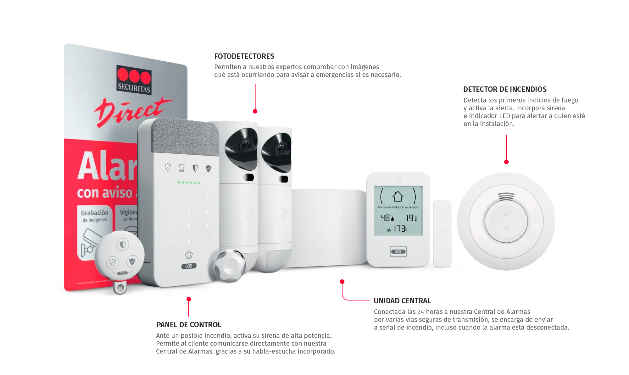 Quan el detector d'incendis activa l'alerta per un possible foc, diversos dispositius del sistema d'alarma tenen un paper fonamental perquè puguem comprovar què passa i avisar emergències si cal.